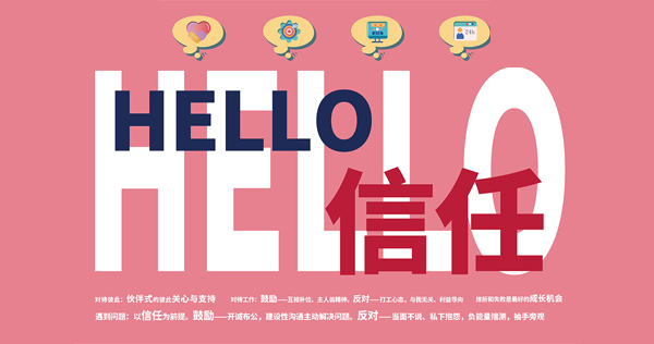 伙伴式文化,鼓励互相补位、主人翁精神;反对打工心态,与我无关。利益导向挫折和失败是最好的成长机会,以信任为前提,鼓励开诚布公,建设性沟通主动解决问题;反对当面不说、私下抱怨,负能量揣测,袖手旁观